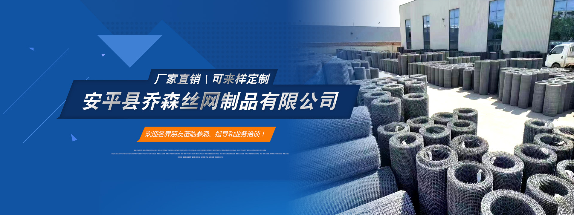 安平縣喬森絲網(wǎng)制品有限公司主營產(chǎn)品:篩網(wǎng)、金屬裝飾網(wǎng)、沖孔網(wǎng)板、防滑板和軋花網(wǎng)。常年現(xiàn)貨供應(yīng)45號黑鋼絲編織篩網(wǎng)、熱鍍鋅鋼絲篩網(wǎng)、304不銹鋼篩網(wǎng)和冷鍍鋅鐵絲網(wǎng),加工定做耐磨65號錳鋼絲篩網(wǎng)、菱形孔防堵篩網(wǎng)、養(yǎng)殖用長方孔鐵絲網(wǎng)、金屬裝飾網(wǎng)、盤條 礦篩網(wǎng)等各種鋼絲篩網(wǎng)和建筑用鐵絲網(wǎng)片,歡迎新老客戶前來咨詢洽談合作。